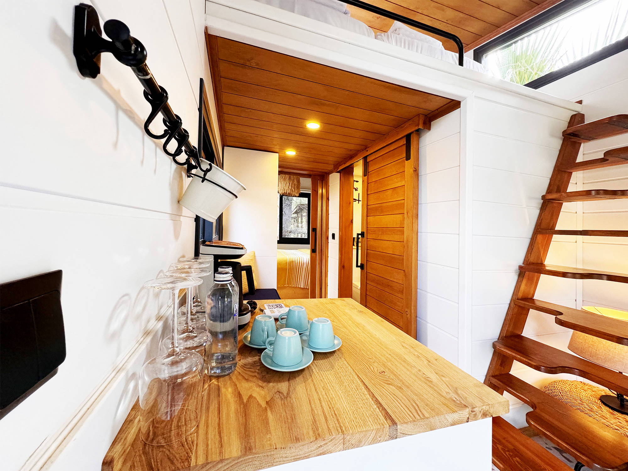 Armutlusu Vagon Ev'imiz kısmi deniz manzaralıdır. Armutlusu'yun kapısı kendine ait verandası ve oturma alanına açılıyor. Vagon evin önünde ayrıca oda kullanımına özel 2 şezlong ve 1 şemsiye bulunmakta. Armutlusu 1 yatak odası, oturma alanı, banyo ve asma kattan oluşmaktadır. Vagonda yatak odasında 1 çift kişilik yatak, asma katta 2 tek kişilik yatak bulunmaktadır. Vagonda maksimum 4 kişi konaklayabilmektedir.