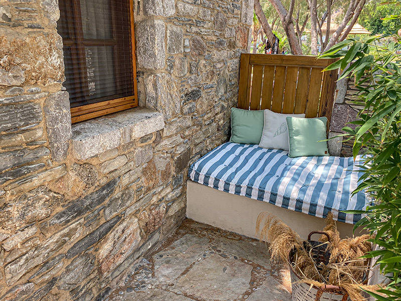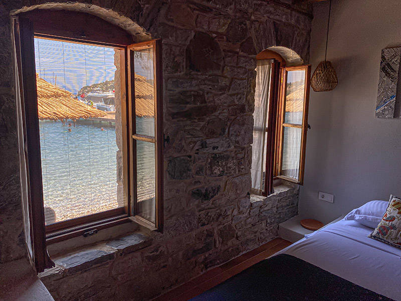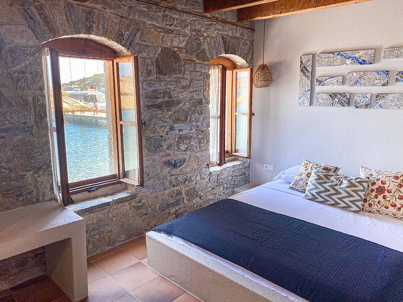 İskaroz'un pencereleri Kargı Koyu'nun masmavi denizine, kapısı deniz manzaralı oturma alanına açılıyor. Önünde kendine ait bir verandası ve oda kullanımına ait 2 şezlong 1 şemsiyesi bulunuyor. İskaroz odamız 2 kişiliktir.